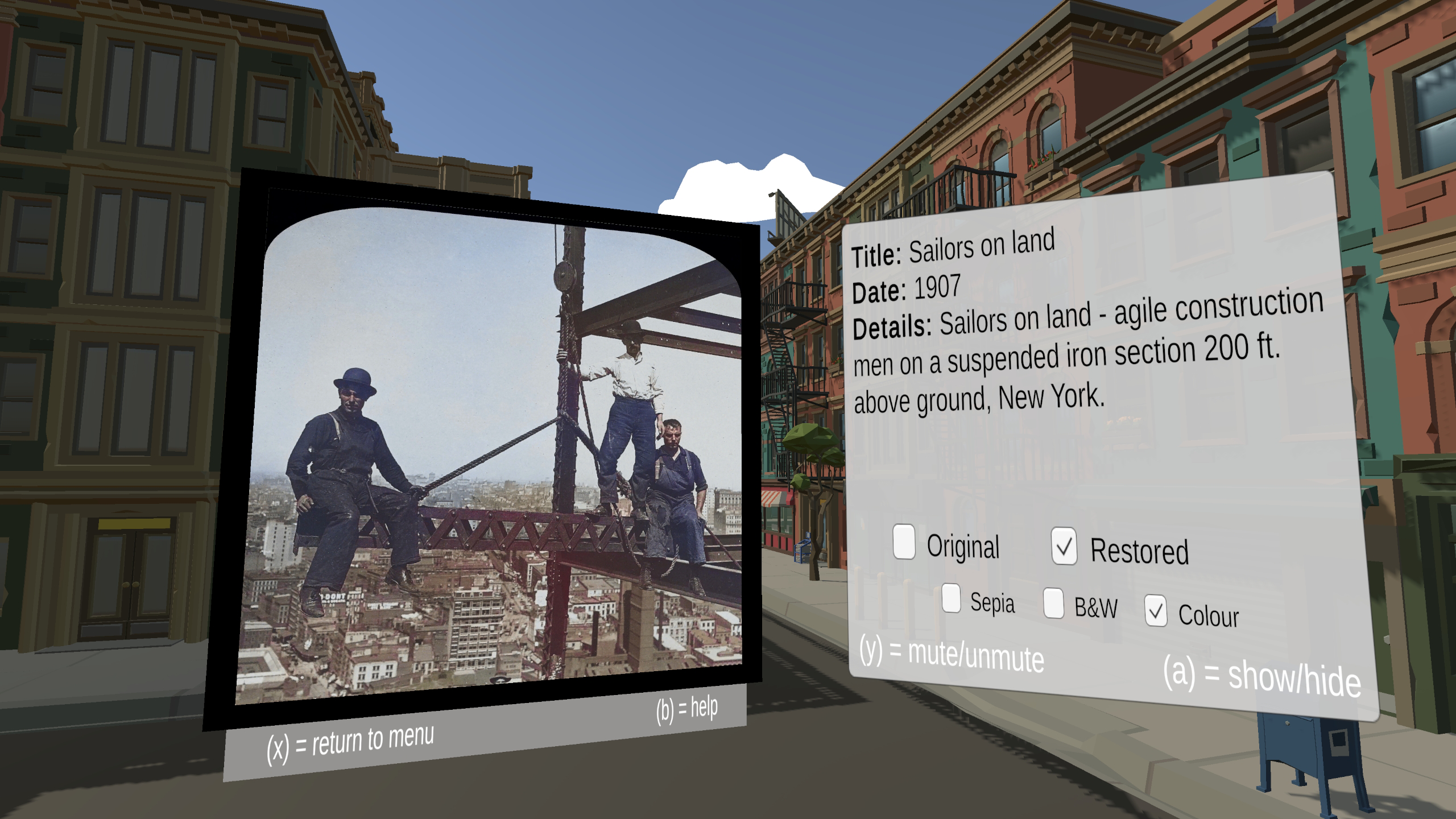 I am a solo developer with a passion for VR photography, and I became captivated by the sheer amount of Victorian Stereocards available. Sadly my first attempts to view these in my VR headset showed that many were poorly aligned and made for uncomfortable or even impossible viewing experiences. Some images viewed in VR were eye-boggling, even with basic straightening and cropping. I spent over a year performing my own research and eventually developing my own tool for aligning and cropping these images so that they are comfortable to view in VR. The unpleasant experience of misaligned images didn’t take away from the amazement I found viewing other images in full in my headset. Seeing famous figures of the past, or iconic scenes such as workers precariously balanced on girders high above New York – but in 3D! The feeling of being a time traveler stood on a bustling Victorian street – and picking up on things, not from a History book, but from feeling like you are there in person.